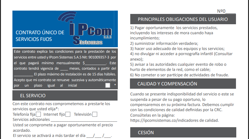 para cancelar el contrato debe encontrarse sin facturas pendientes o cancelar las facturas pendientes, una vez descarga el formato lo diligencias y lo haces llegar lo mas pronto posible a nuestra oficina 7 días antes de su corte programado.